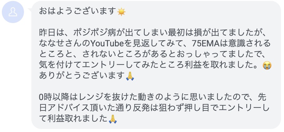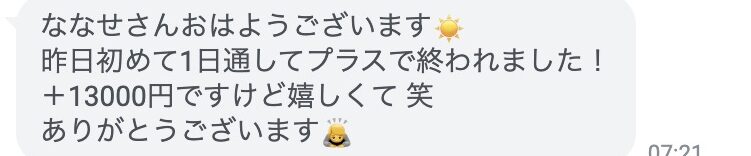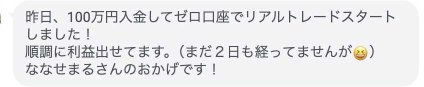 私の上のリンクから口座開設すると私に紹介報酬が入るんだけど、その代わりに「ななせまる式:勝率75%の1分足スキャルピング手法」が実践できるようにLINEで無料サポートすることにしたよ!