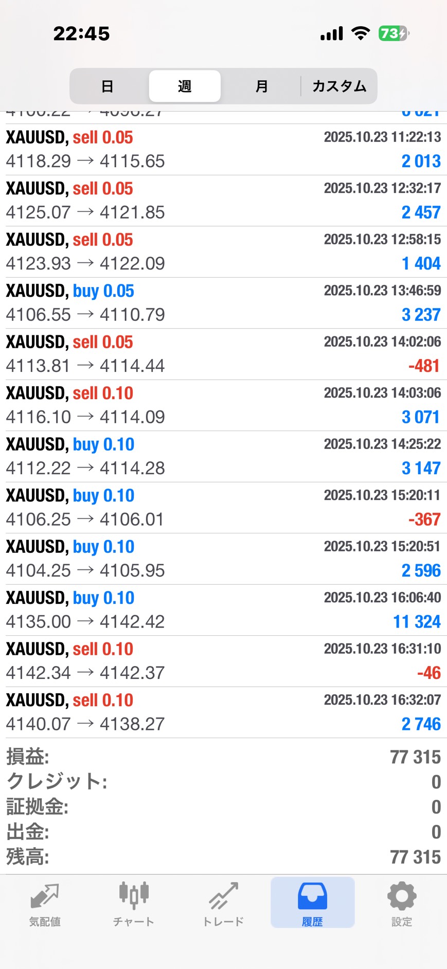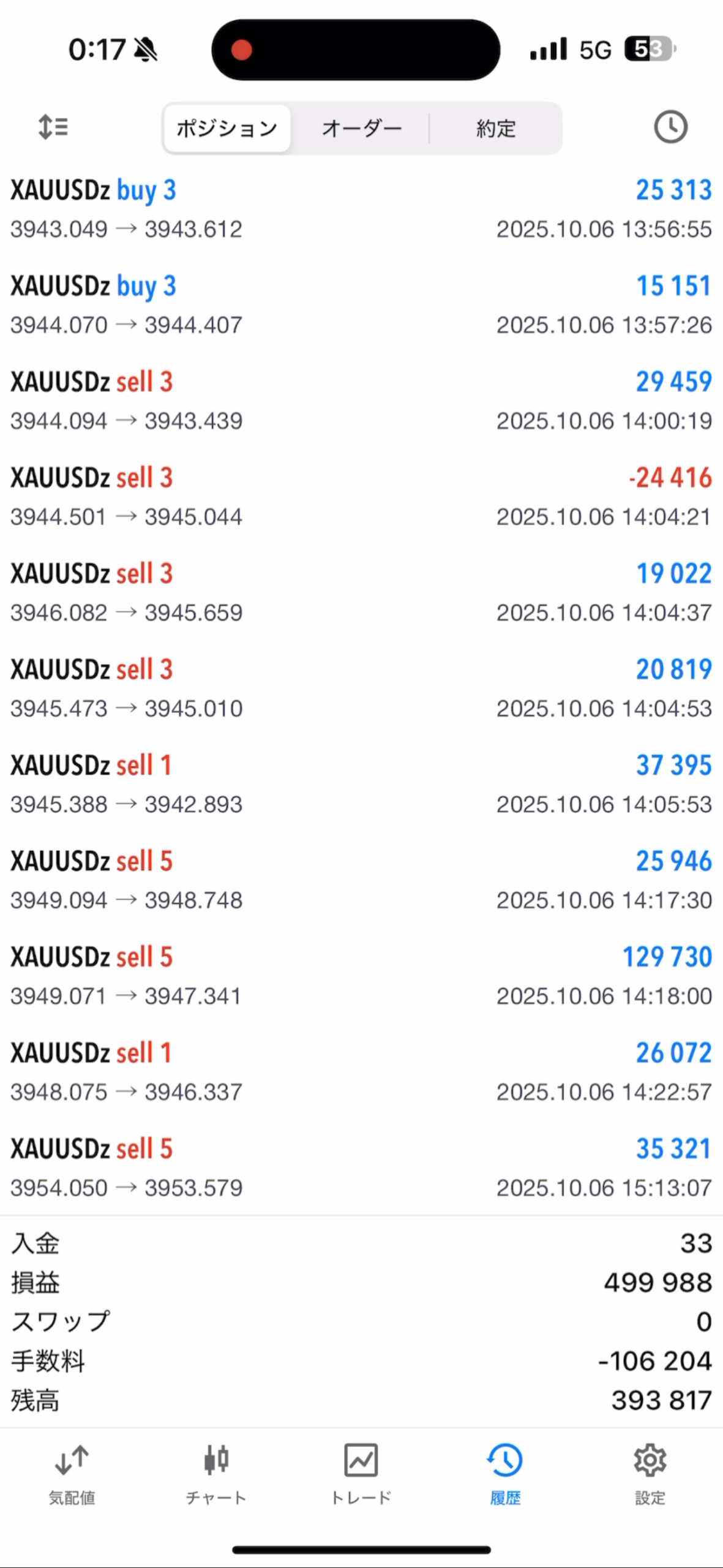 あと、ニューヨーク時間は本当に値動きが激しいから普段のロットの半分でスキャルピングした方が安全だよ。