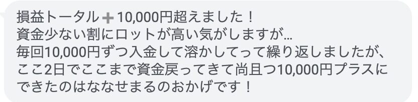 資金が増えたら徐々にロットも上げていけば複利でどんどん一回あたりの利益も増えていくよ!
